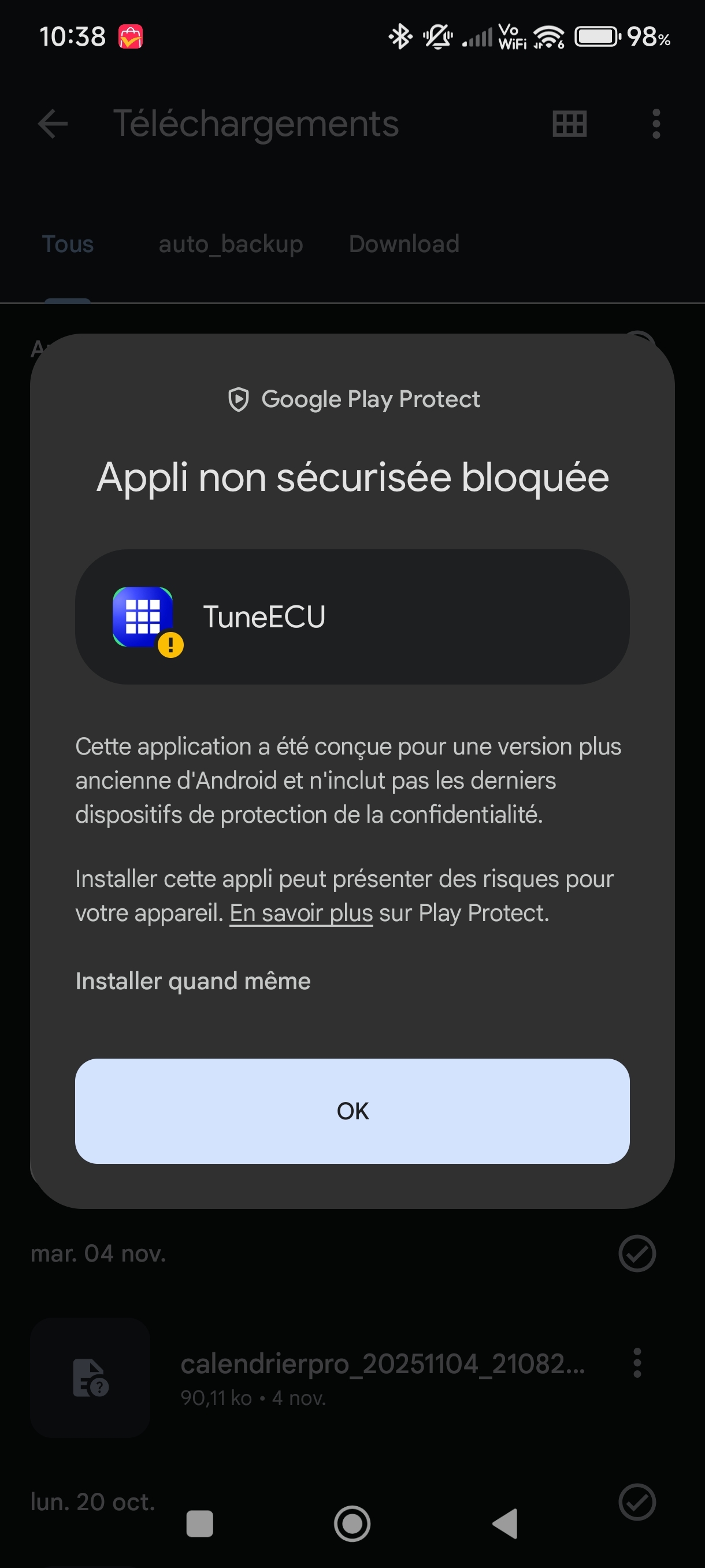 Ensuite il faut télécharger et installer le fichier TuneECU.apk