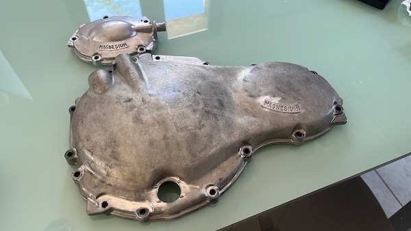 Me revoilà. Après avoir beaucoup tourné autour des carters moteur, je me suis mis au décapage. Le décapage chimique avec du produit de grande surface de bricolage marche très bien. Voilà quelques photos des couvercles moteur.